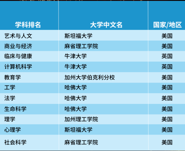哈佛大學(xué)依舊位居該專(zhuān)業(yè)榜首,并且在前20名中,美國(guó)占據(jù)了12個(gè)席位。